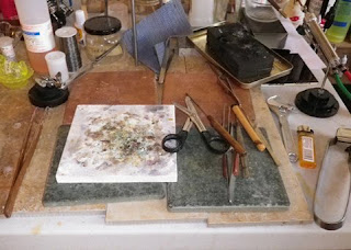I work with several techniques and materials. I do wire wrapping, metal working, and beadweaving.